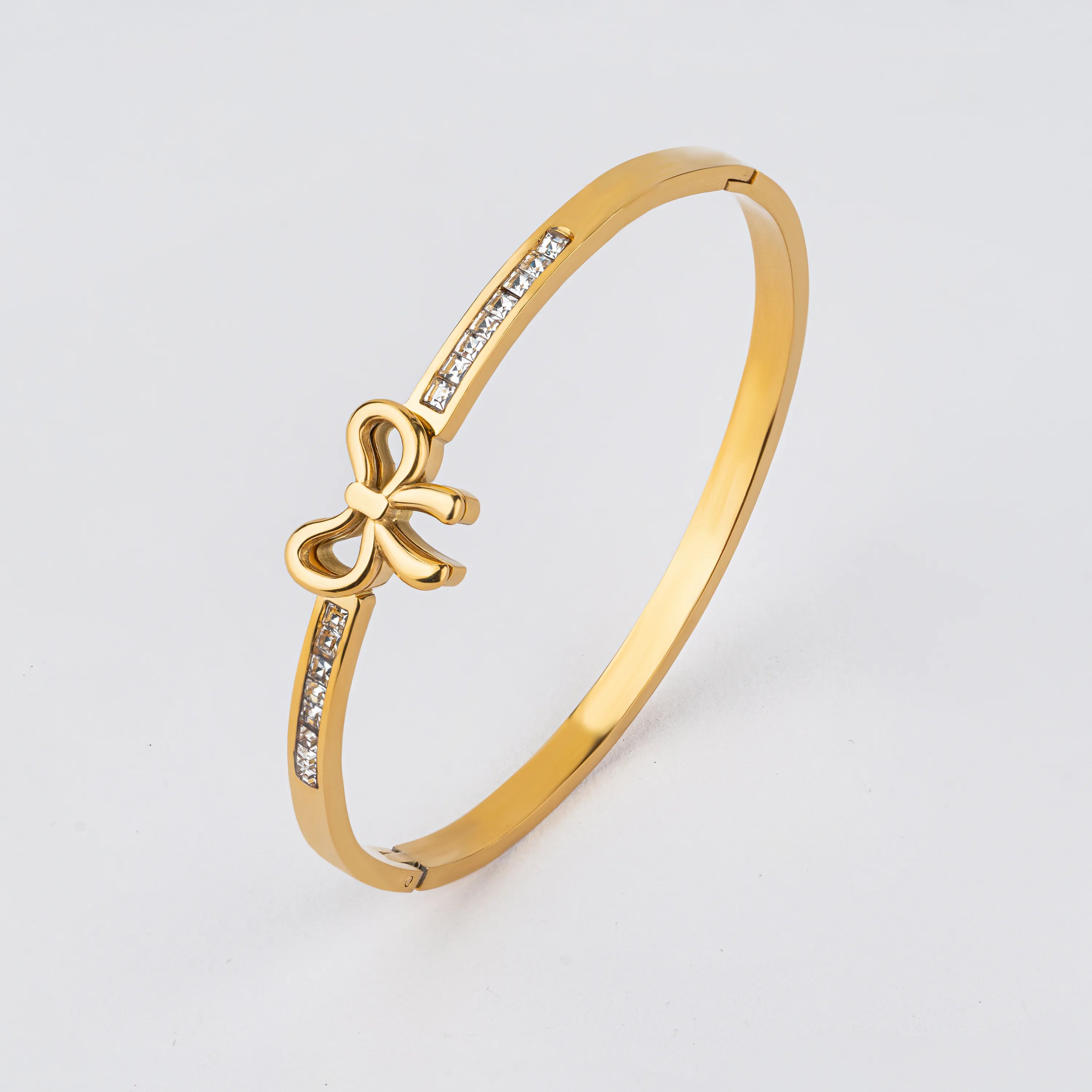 Poise – 18K Gold Plated Gold Bow CZ Bangle