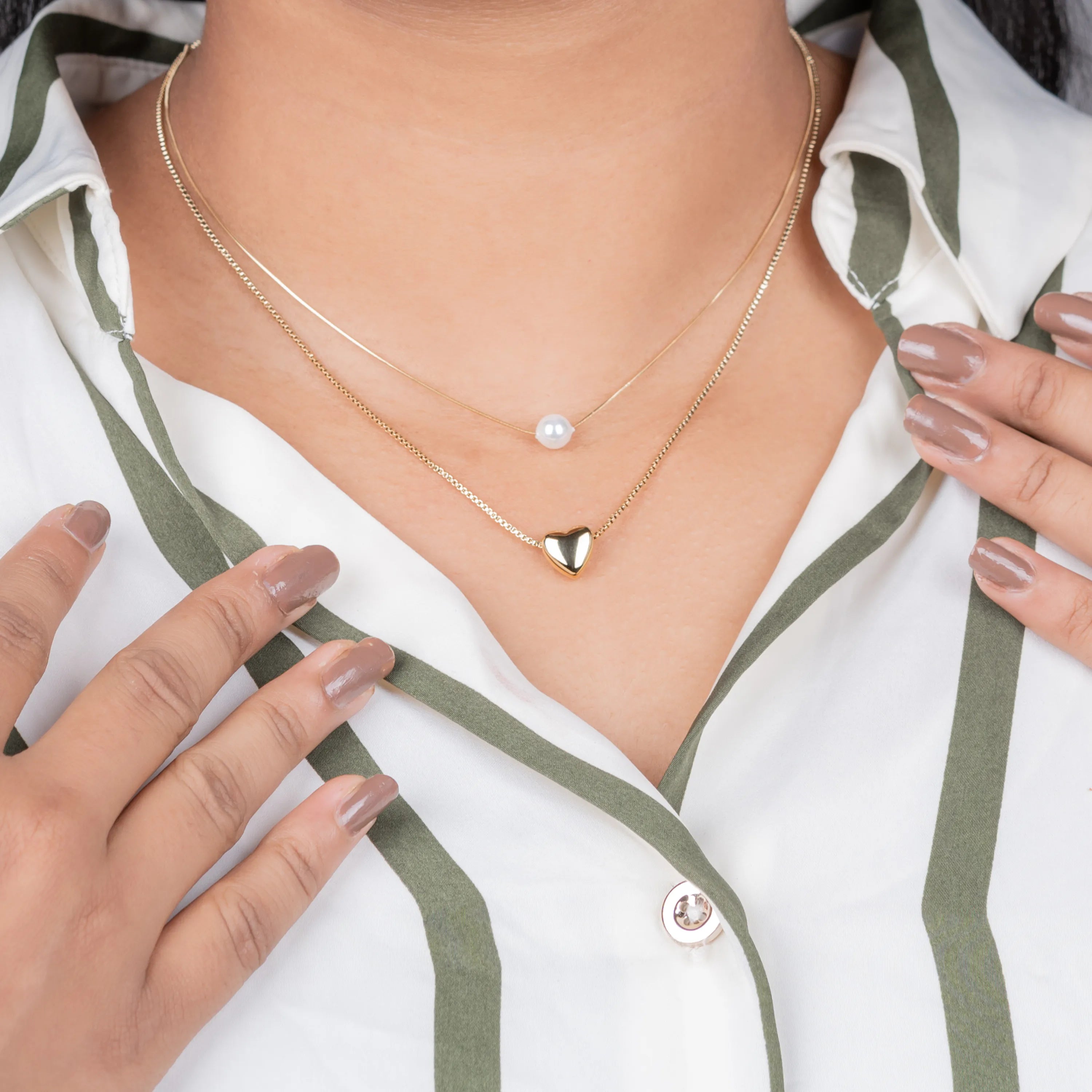 Soul – Dual Chain Pearl & Puffy Heart Necklace