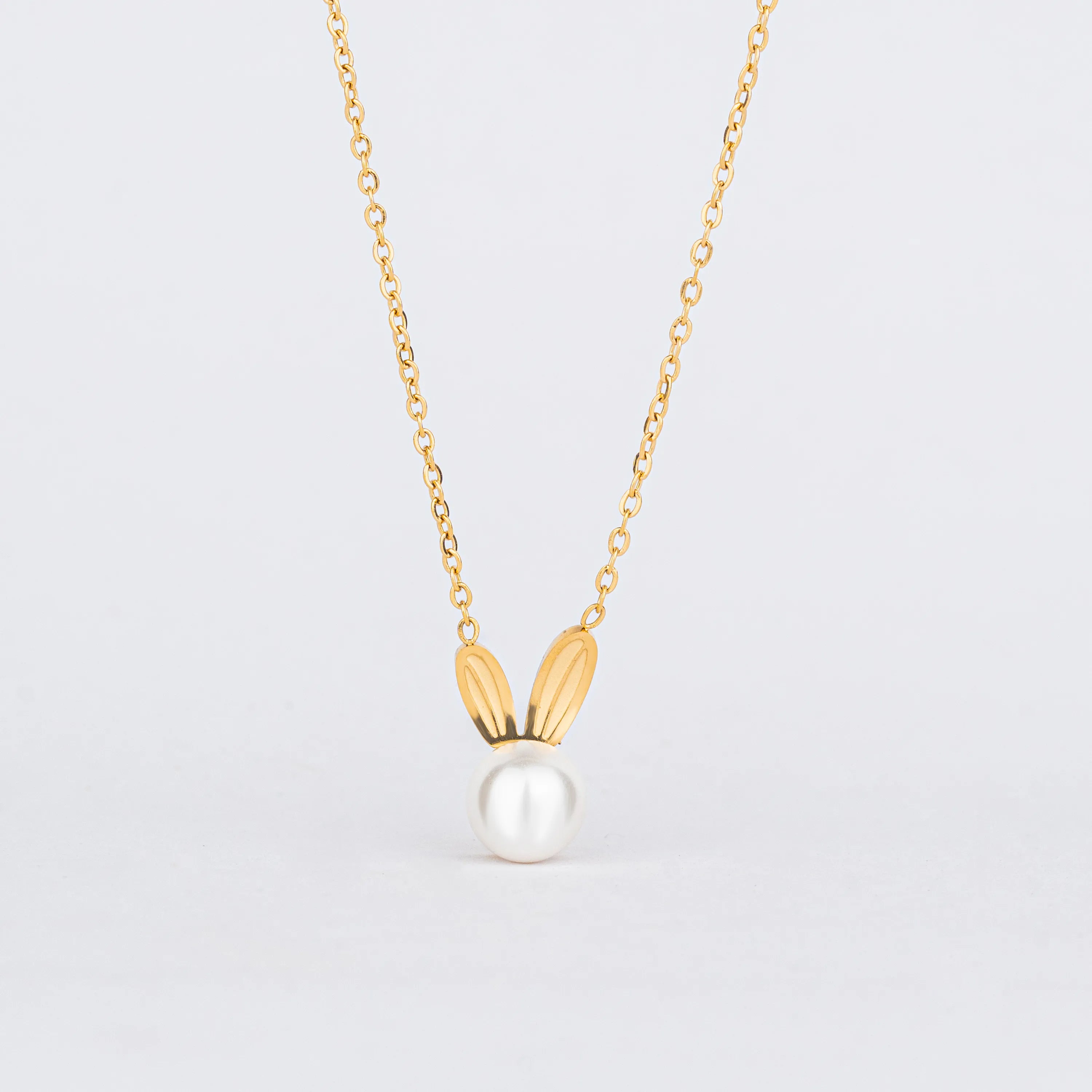 Peep – Gold-Plated Pearl Bunny Pendant Necklace