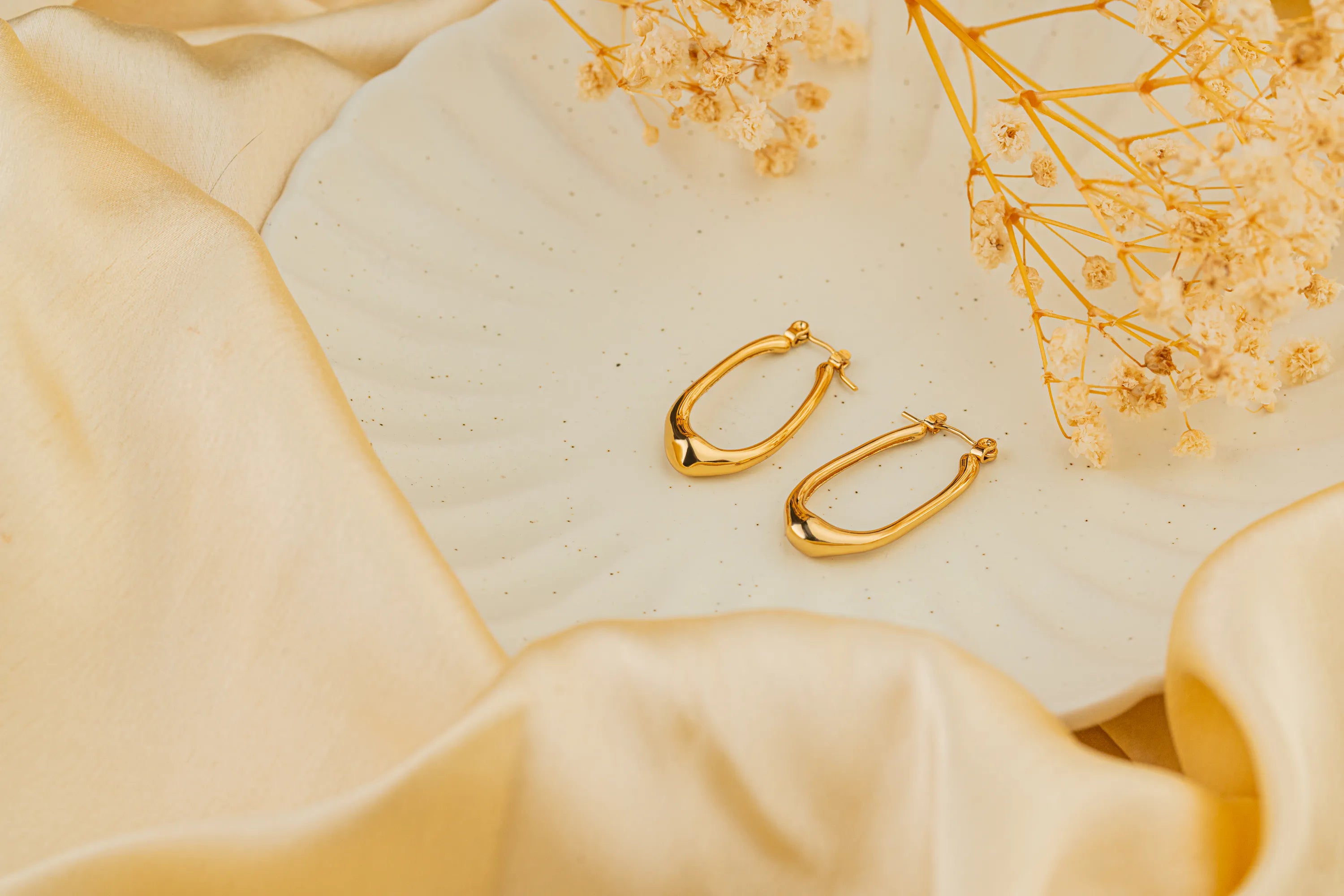 Velo – 18K Gold Plated Polished Oval Drop Earrings