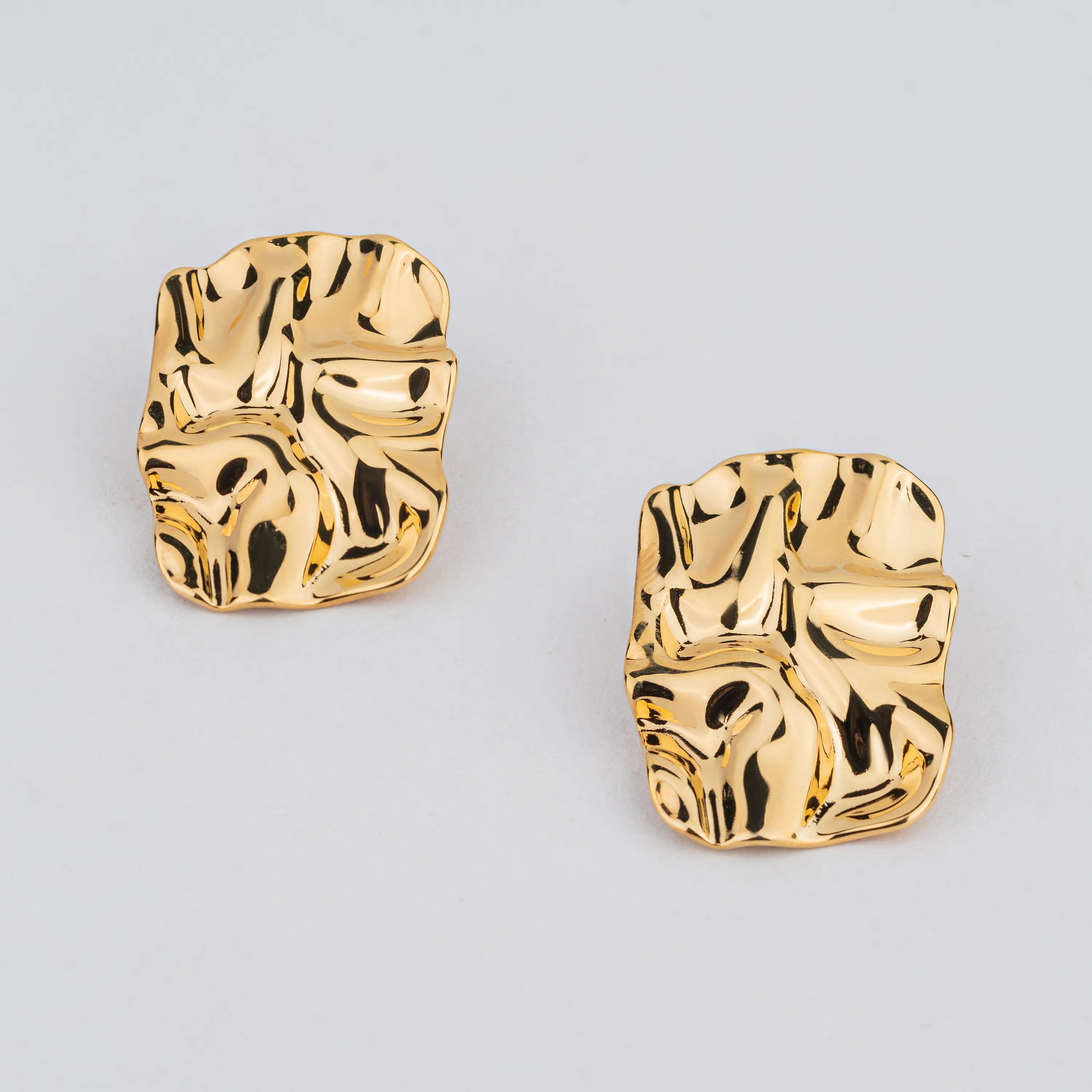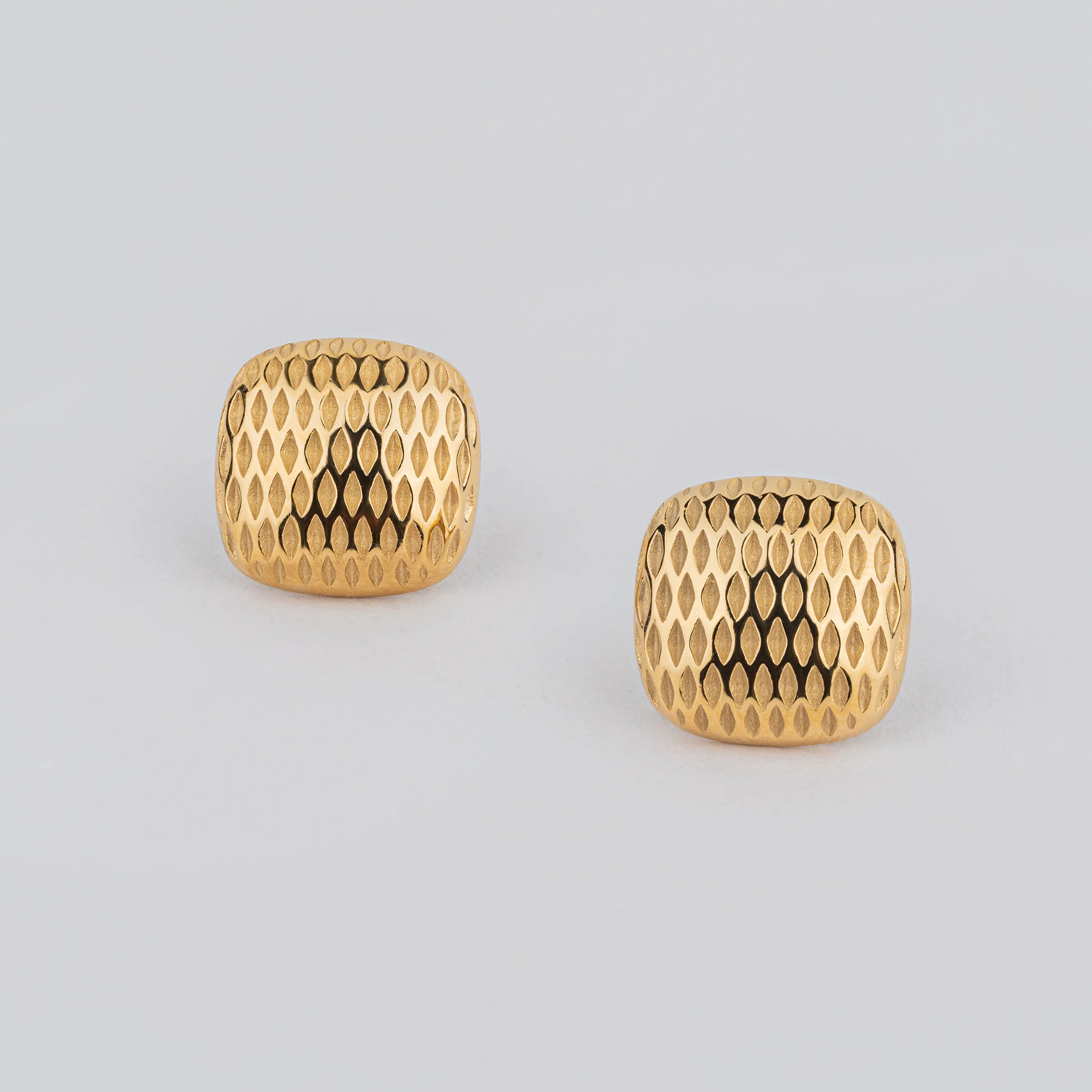 Pave – 18K Gold Plated Embossed Stud Earrings