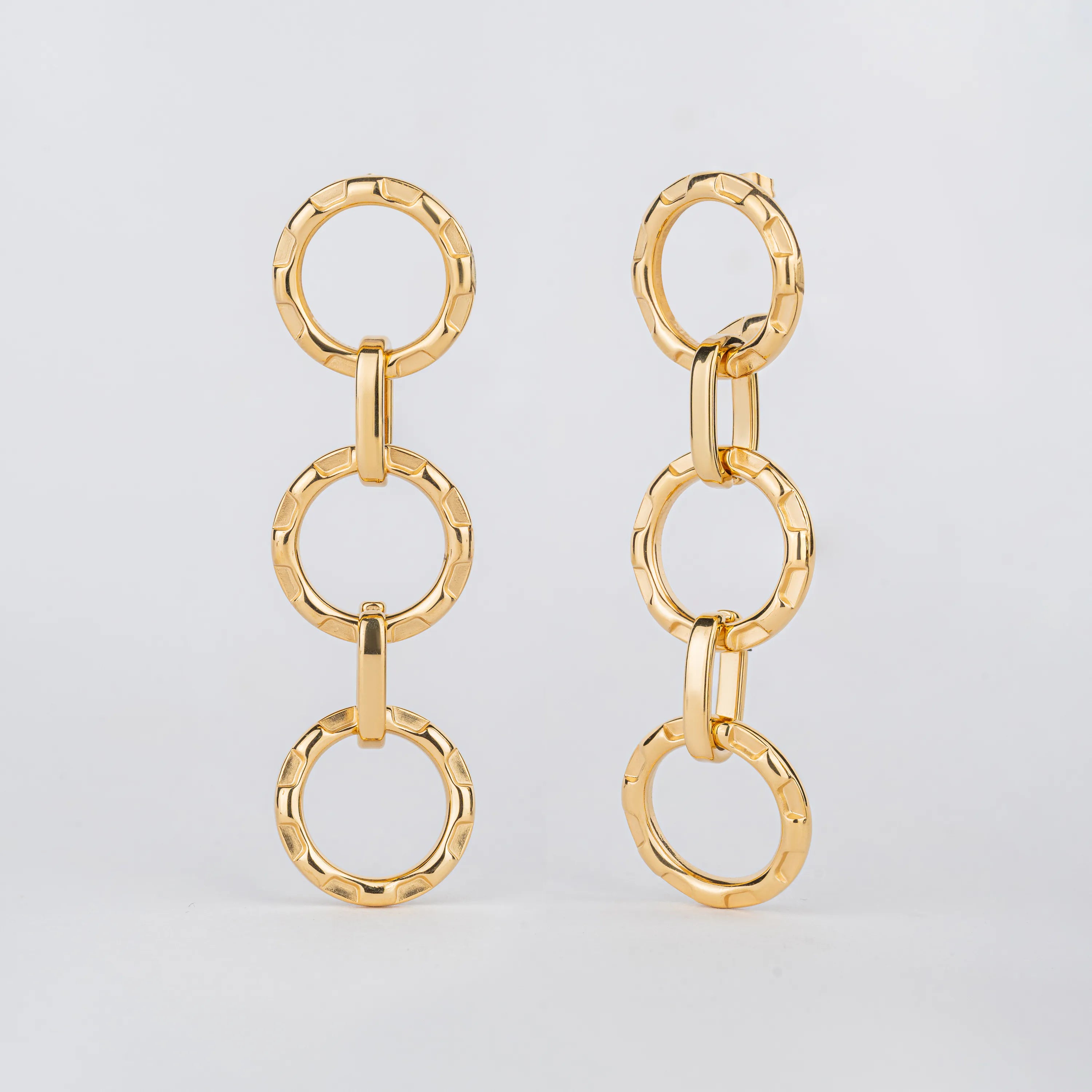 Trinity – 18K Gold Plated Earrings with Gold Triple Linked Circles