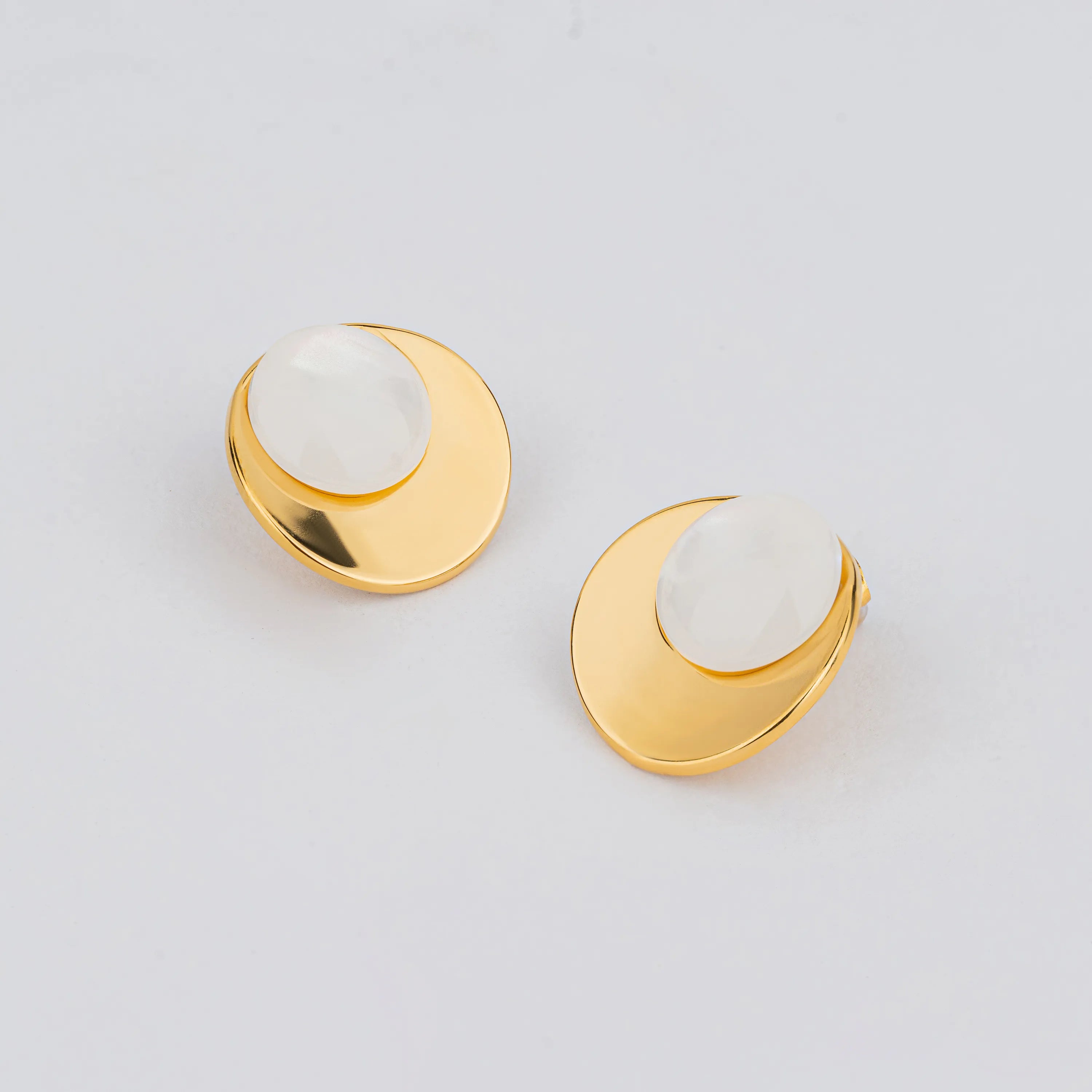 Glowdrop – 18K Gold Plated Stud Earrings with White Dome Center