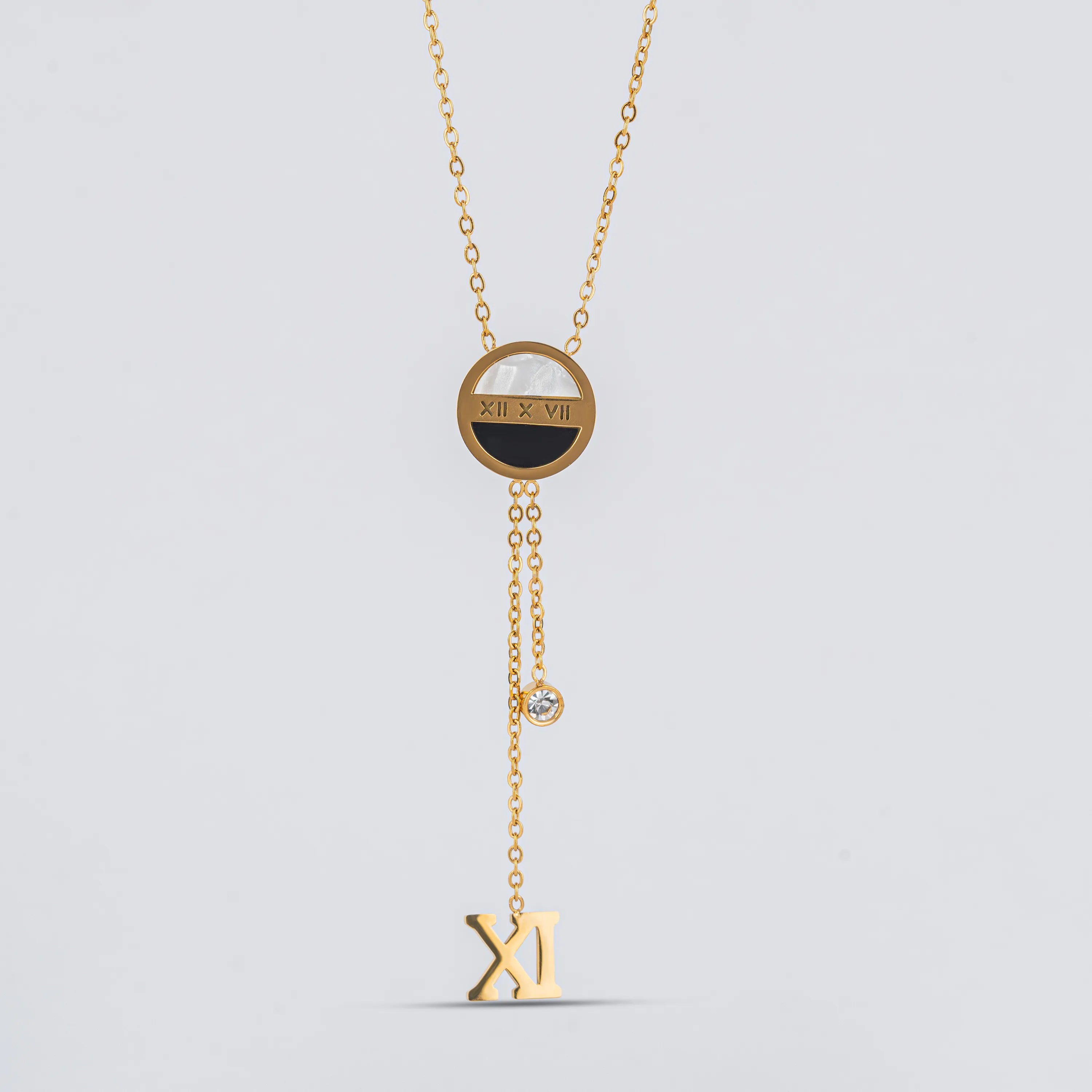 Nova – 18K Gold Plated Pendant Necklace with Roman Dial & CZ Drop